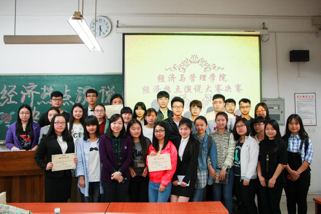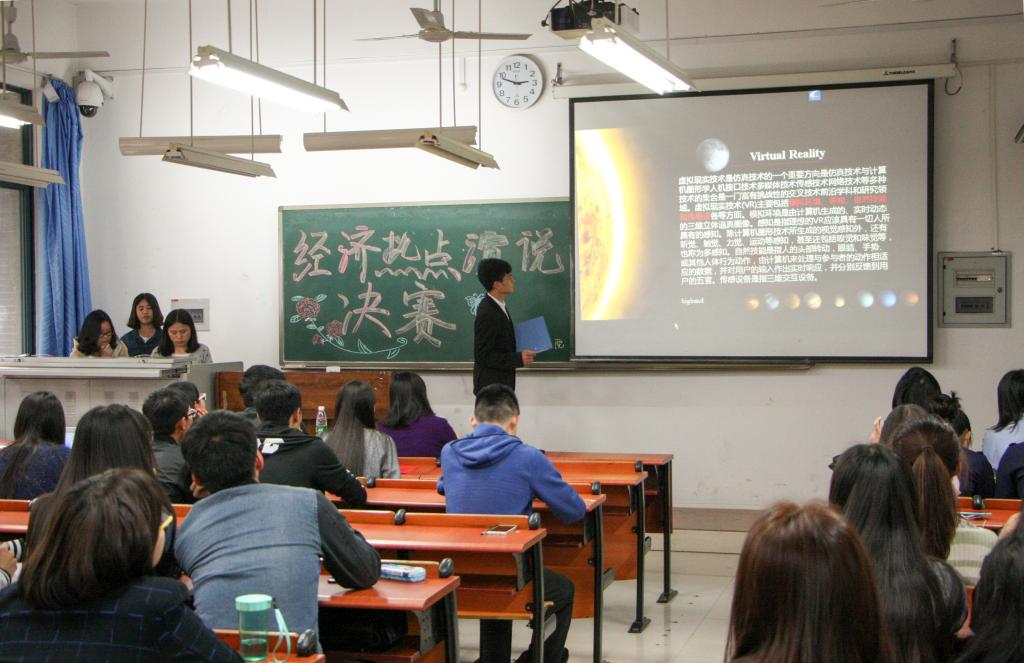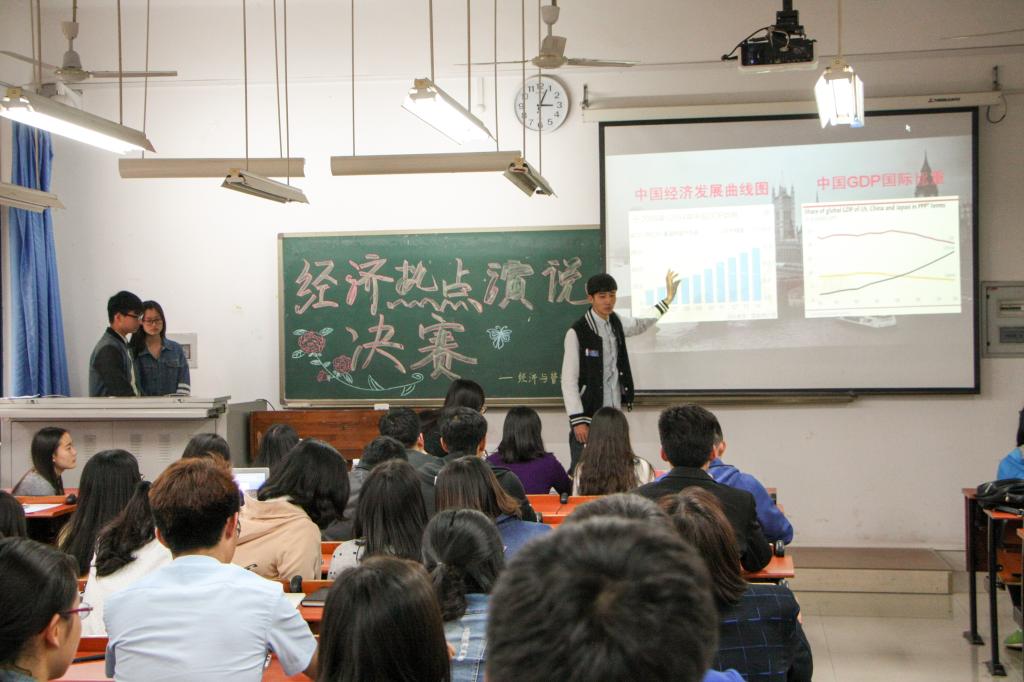 本次经济热点演说决赛将PPT与演说、答辩结合起来,既考验同学们对经济热点的分析演讲能力,同时在答辩过程中不断积累经验,促进成长。“四大天王组合聚焦两会,关注中国经济发展问题;“热点不冷”组合注重韩剧所带来的经济影响;快乐小队关注经济,并表示对中国经济抱有希望,迎来开门红。参赛选手们在讲台上淋漓尽致的展示着自己的成果,面对老师提问从容不迫、沉着冷静,机会是留给有准备的人。最后,“四大天王”与“AD”组合并列第一,获得第一名。“快乐小队”、“TOT”获得决赛二等奖。“四人行”、“合伙人”、“热点不冷”获得决赛三等奖。