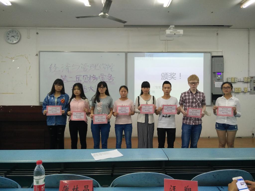 经过一一角逐,最终由何新星为组长的第三组参赛选手获得本次大赛的一等奖,何欢为组长的“增值队”获得大赛的二等奖,刘誉为组长的“步步为营队”取得大赛的三等奖,本次大赛的团队优秀奖由第一、四、七组三个院队获得。