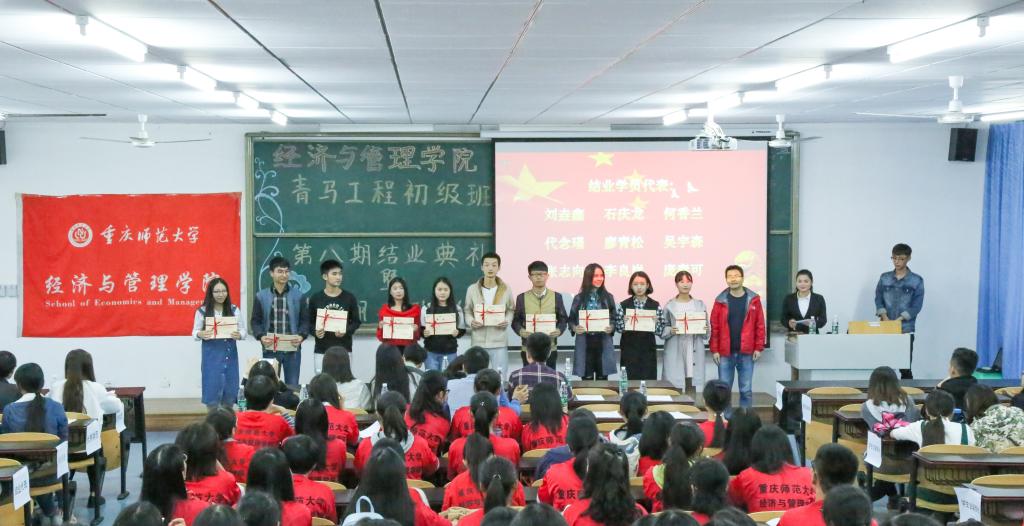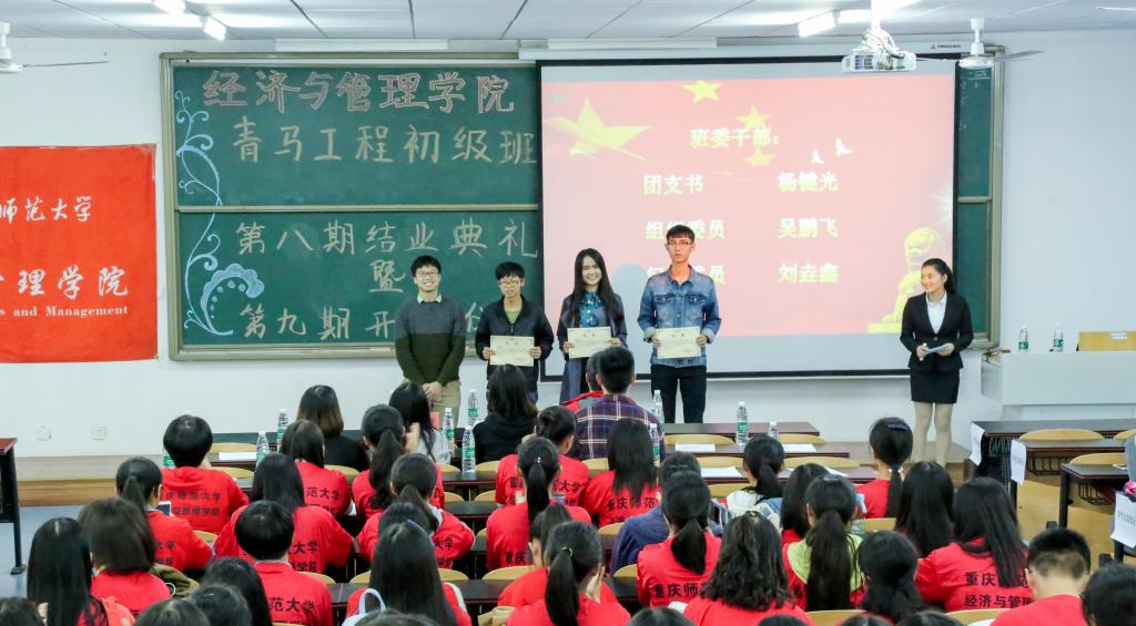 在回顾了第八期青马工程结业成果回顾的PPT演示文稿后,第八期青马学员代表肖玲为第九期青马新学员交流自己的学习心得体会。第九期青马全体学员庄严宣誓:脚踏实地,志存高远。团组织书记朱旭森为结业学员代表颁发证书,并发表讲话,希望新学员学会“读思学做”,一心向党,在规范自身前提下争做青年思想先锋,做学生行动楷模。