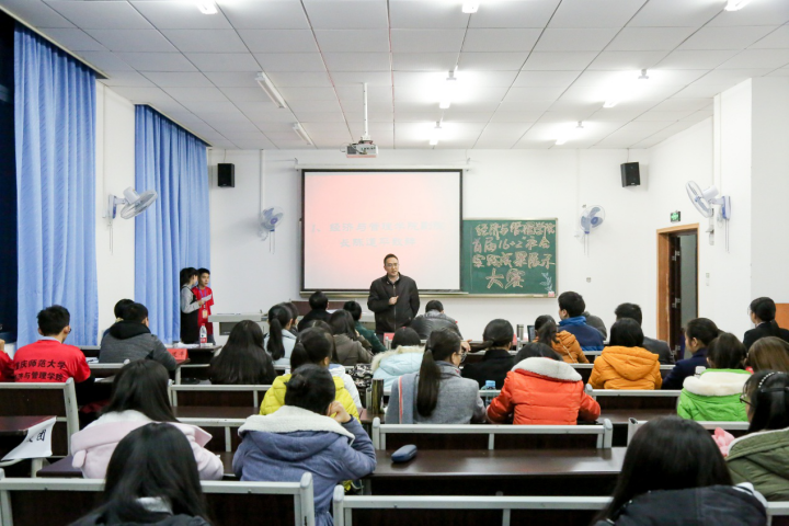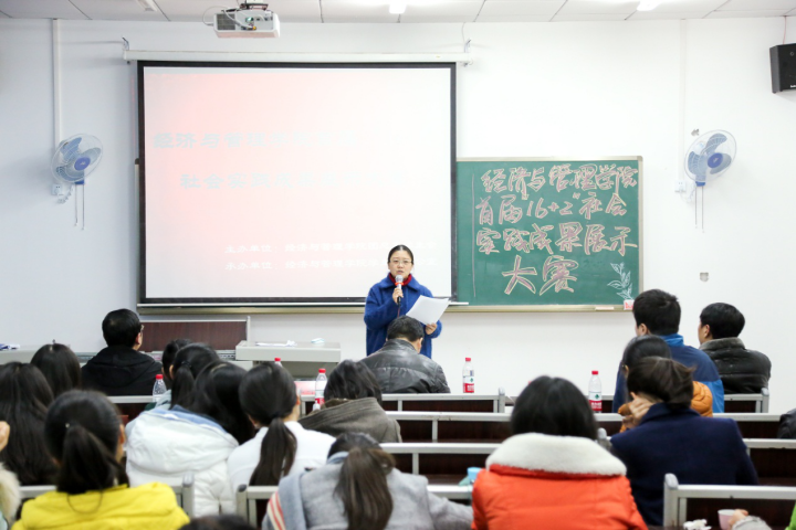社会实践是大学生成长成才的必经之路,也是加强大学生思想政治的教育环节。为进一步激励广大同学积极投身社会实践,接触社会,了解企业,2016年12月22日晚7点整,番号鸽 首届“16+2”社会实践成果展示大赛于汇贤楼文学院113隆重举行。20名经过了初赛、复赛、从近千名同学红脱颖而出的同学参加了此次决赛展示活动,其中2015级7名,2016级13名。出席本次大赛并担任评委有番号鸽 教务处副处长杜斗桓,番号鸽 党委书记税强、副院长陈道平、院长助理马文斌、工商管理系主任朱勇教授、经济系冉亚清教授。范波、史乐峰两位老师作为指导教师代表出席了此次活动。