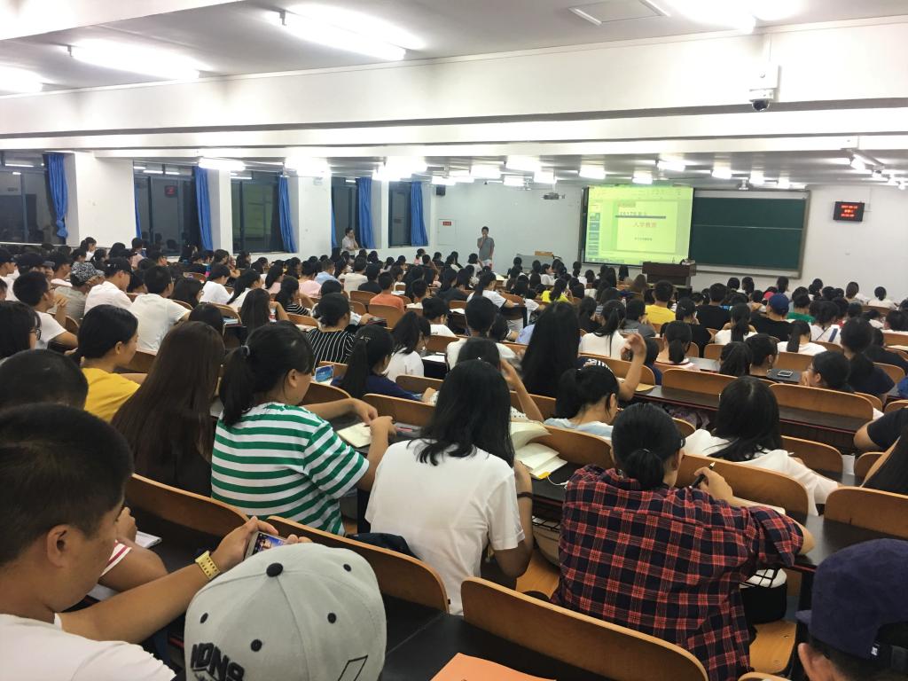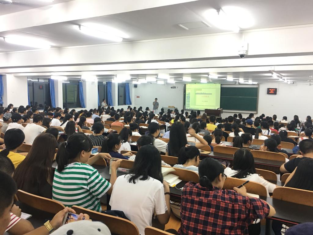 黄老师为新生耐心地讲解了学士学位证书对绩点的要求、教务系统选课的注意事项、重修补修及刷新学分的申请流程、转专业的要求等新生较为关注的问题,为新生以后的学习提供了极大的便利,体现了学院领导和教师对2017级新生的关注和关爱。天高任鸟飞,海阔凭鱼跃,希望新生潜心学习、努力奋斗,在学院搭建的各种平台中更好的成长与发展,为学院增添光彩,才能不负学院各位领导、教师的苦心。