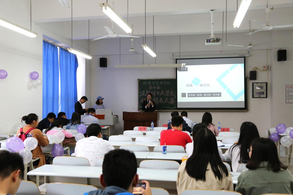 的八个优秀团队进入决赛,并在此展开最后的竞争。本次决赛由学院专业老师担任评委,运用现场演讲搭配PPT的形式竞演。各创业团队派出一位代表来介绍团队的动作理念、技术产品和服务概念,旨在以参赛选手的口才、团队魅力和创业理念来打动评委的心,以此获得评委老师的青睐。“易职独秀”“实上创意”“BF的续集”“CJP2的续集”等八个创业团队的项目都极具特色,涉及工作、生活、休闲、运动、环保等多个方面。有工作求职类的创业,以一站式服务给予求职者便利;也有与环保相关的创业,以现代科技为工具,为绿色环保添一份助力;还有为农家乐服务的项目,符合大学生多走多看的生活理念……各团队主讲人声情并茂的讲演吸引着评委和观众的眼球,同时与现场的互动让大家在欢声笑语中轻松了解到其创业内容。八个创业团队的竞演以及评委的评选打分之后,本次大赛得出最终的结果。“易职独秀”团队以优秀的创意和运营理念获得高分,荣获本次大赛的第一名;“实上创意”“BF的续集”“CJP2”团队以优秀的表现和成绩获得大赛的优秀奖。随后评委对大赛整体进行点评并与获奖者合影留恋。