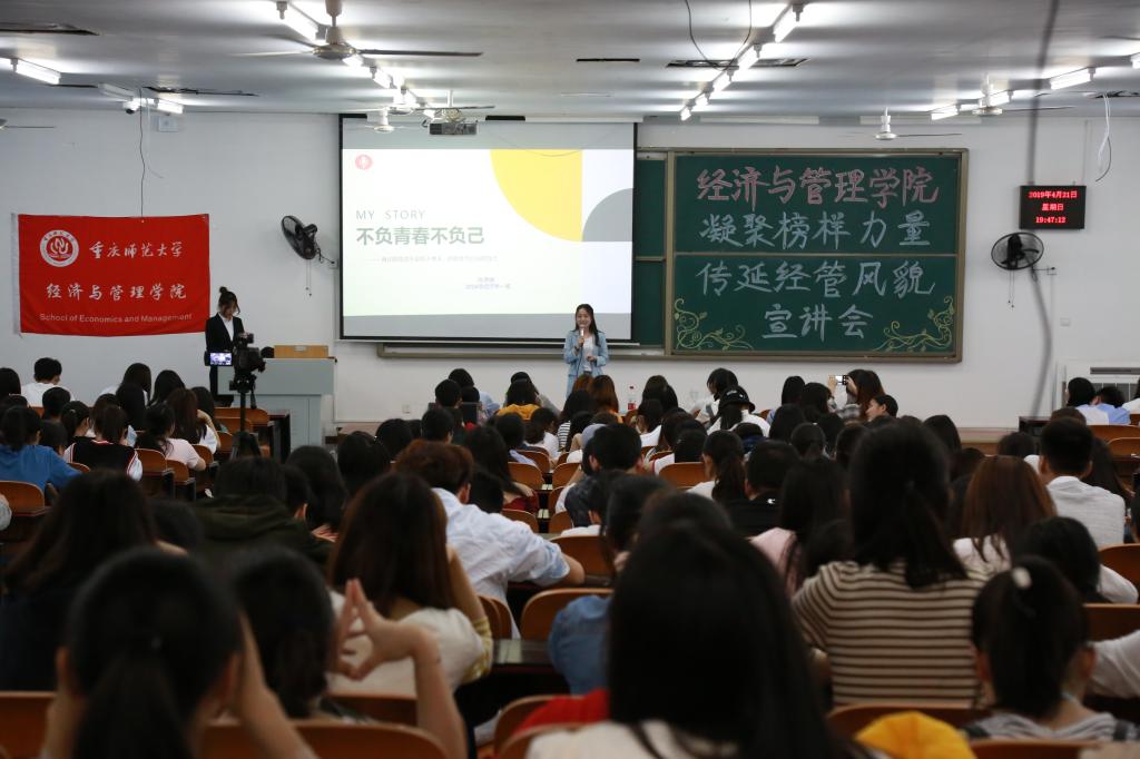 于T2507教室举行“凝聚榜样力量传延经管风貌”第六场学生先进集体和个人宣讲会。本次宣讲分为四组,覆盖全院学生。