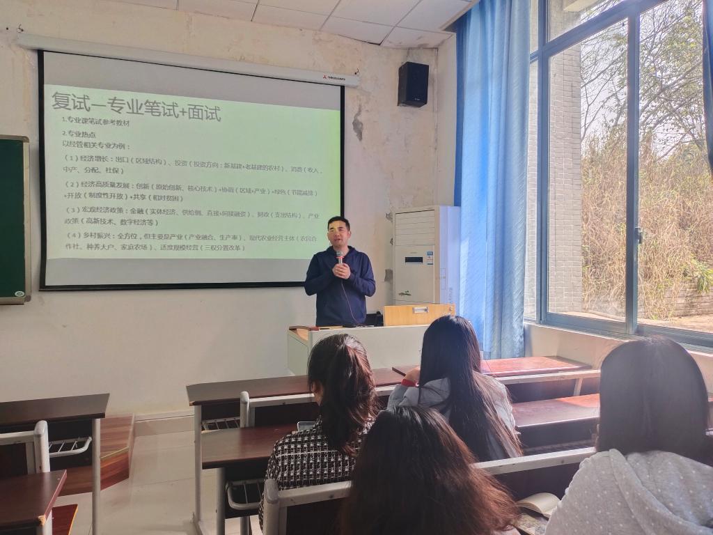 “考研复试与调剂指导会”于汇贤楼101教室成功举行。分管科研及研究生工作副院长喻科,硕士研究生导师王亚飞教授作为主讲人,对考研复试和调剂做出了相应指导,2017级考研学生积极参与此次活动。