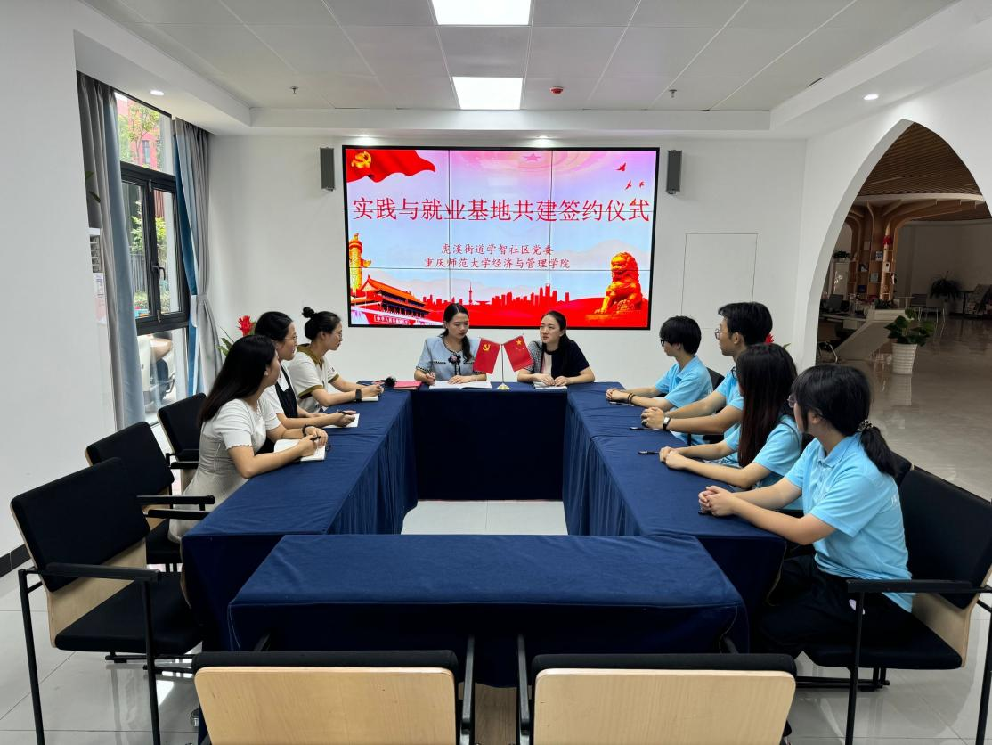 与重庆市高新区虎溪街道学智社区于7月18日上午成功举行实践与就业基地共建签约仪式。此次合作旨在进一步利用数字技术,推动地方资源与高校人才的深度融合,助力学院学子在实践中提升能力,在交流中拓宽就业渠道。