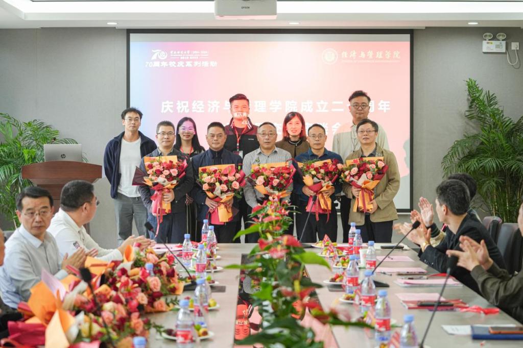 钟敏书记和郑景丽院长代表学院师生向老领导和校友们对学院长期以来的关心和支持表达最深切的敬意,希望他们继续关心支持学院的发展。她们表示,将以学院二十周年为新的起点,以更加坚定的决心和更加昂扬的斗志,在新时代的浪潮中乘风破浪,奋力书写属于全体经管人的辉煌篇章,努力实现新的突破,实现新的飞跃。