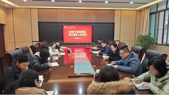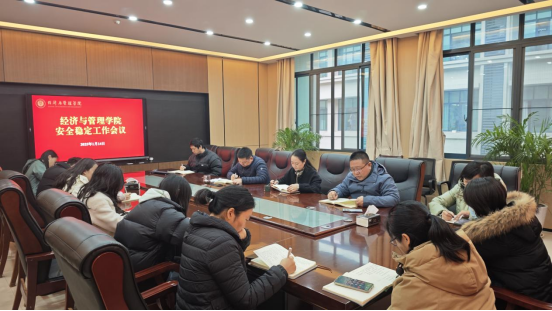 在求是楼420会议室召开安全稳定工作会议。本次会议由学院党委书记钟敏主持,学院党委副书记李青松、副院长陈宇科、以及全体科级干部、辅导员等参会。