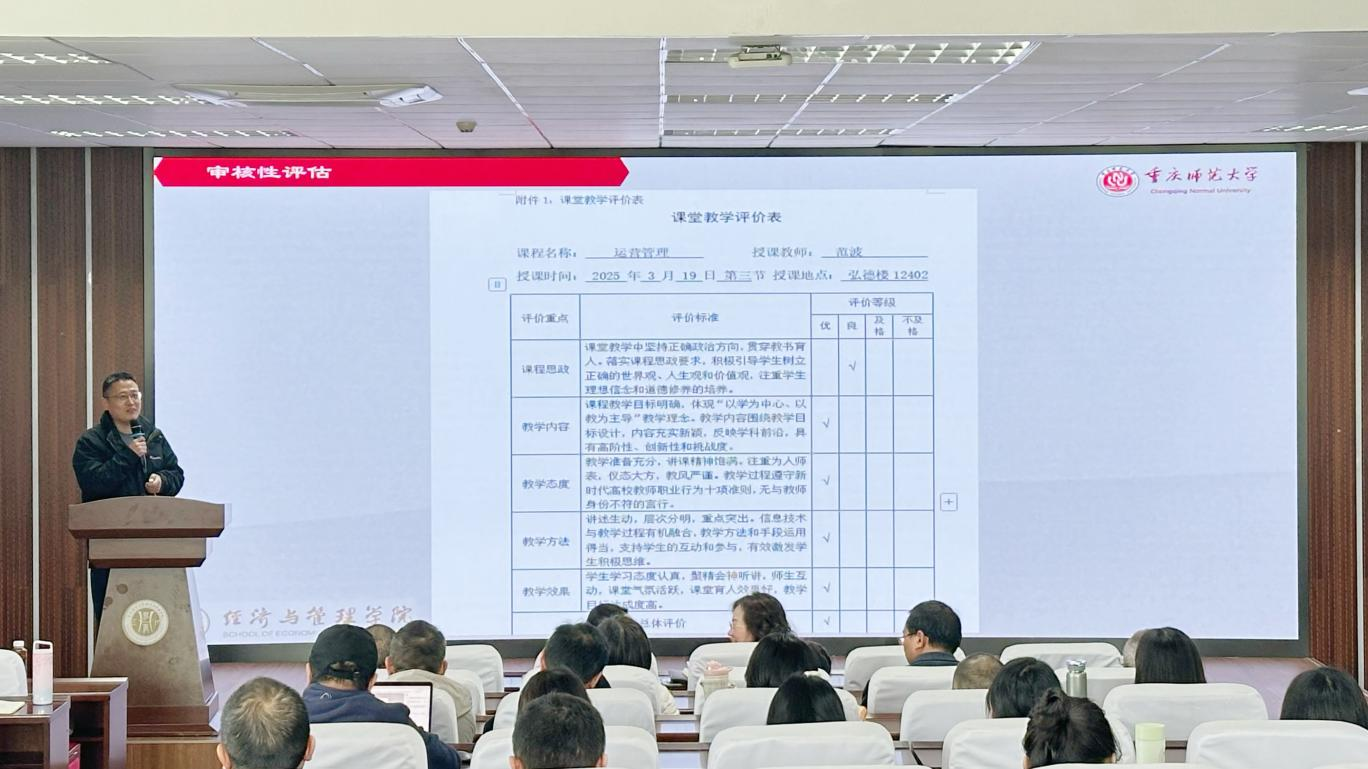 随后,副院长段俊对即将到来的本科教育教学审核性评估工作进行再次解读,根据学校教务处提供的建议及评估指标体系,从教学内容、课堂状态、教学效果等方面进行全面分析,特别强调全体教师及时按照评估要求逐项对标自查,以最佳状态迎接专家组的考察。