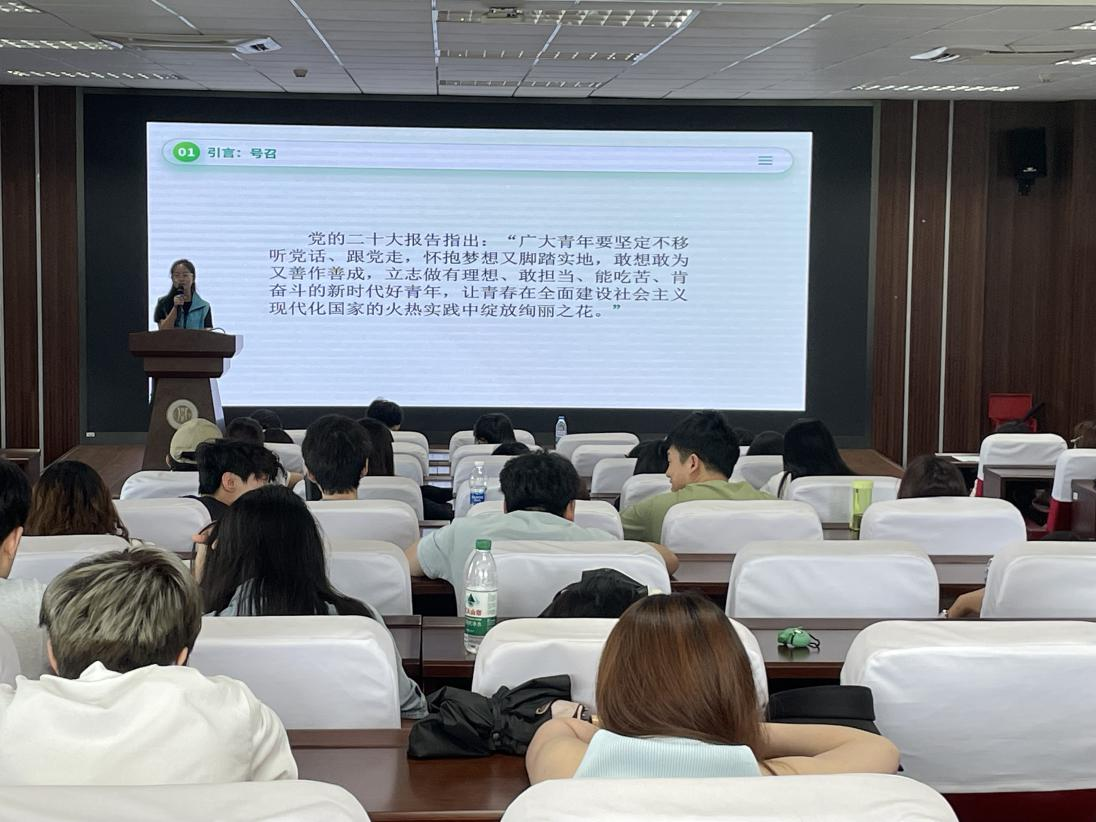 在分享环节,往届志愿者和实习生分享了亲身经历与感悟。志愿者卢佳琦通过视频展示,生动呈现了其与伙伴们在志愿者工作中的点点滴滴,涵盖工作过程、取得的成果以及团队的收获,使在场同学对志愿者工作有了更为直观的认识。实习生陈乐分享了自己的乡村实习生活,讲述了对乡村的全新认知、对乡村工作的深刻理解,以及青年在乡村工作中所肩负的责任与使命。实习生徐紫薇表示,在实习工作中收获了成长,被村民的热情、淳朴与努力所感动,她呼吁广大青年紧跟党的步伐,听党话、跟党走,努力成为能吃苦、敢担当的新时代好青年,为乡村振兴贡献力量。