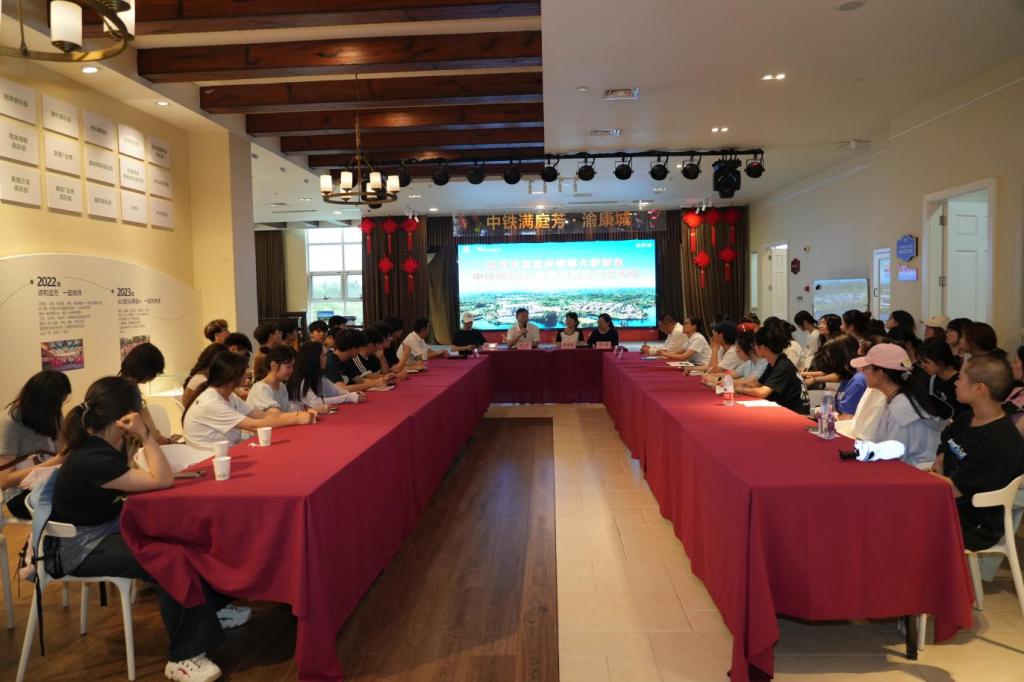 座谈会上,项目品牌营销客户负责人杜桂斌向大家介绍了渝康城的详细分区,着重阐释项目如何通过多维度服务满足长者需求,兼顾全龄段康养体验。渝康城医院院长史忠向大家讲解了医院所提供的各项医疗保障。我校美术学院退休教授陈星槎、农业与物业负责人代勇、大健康运营产业负责人吴华兰与学生们进行了热切交流。