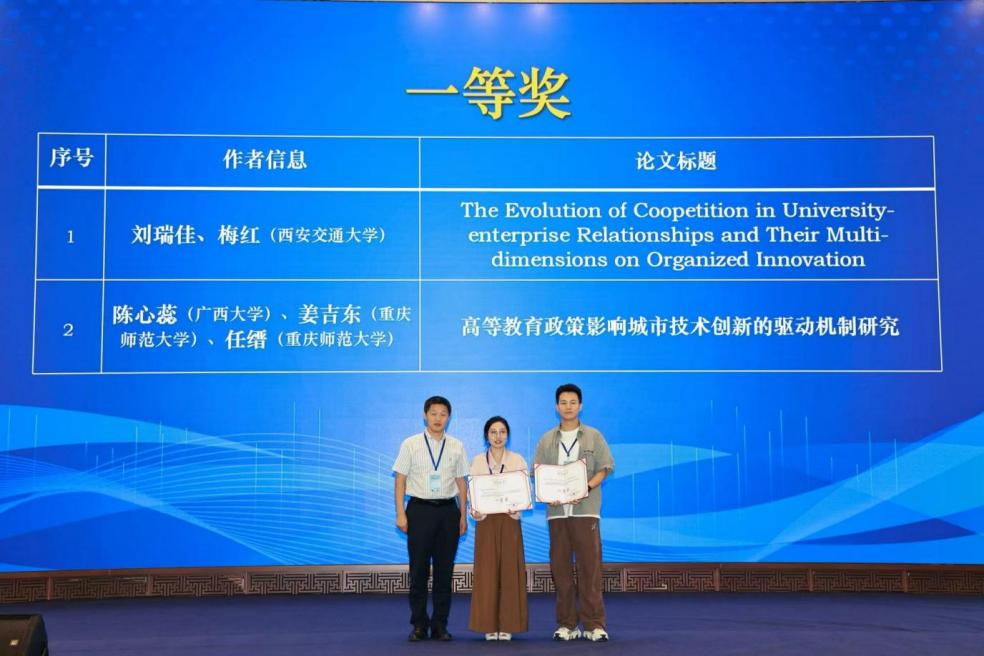 姜吉东和2022级数量经济学专业研究生陈心蕊,在任缙教授指导下共同完成论文《高等教育政策影响城市技术创新的驱动机制研究》。论文以2016年启动的首轮“双一流”建设为准自然实验,基于2011—2022年286个地级市面板数据,系统揭示高等教育政策对城市技术创新强度的作用机制,并从“需求—供给—环境”三个维度进行剖析。研究进一步提出优化路径:一是构建需求导向的学科生态,健全产学研联合攻关机制;二是完善基础研究到应用开发的全链条,建立社会服务贡献与资源配置动态挂钩机制;三是实施区域适配战略,通过要素流动补偿和“一省一策”建设破解区域发展失衡。