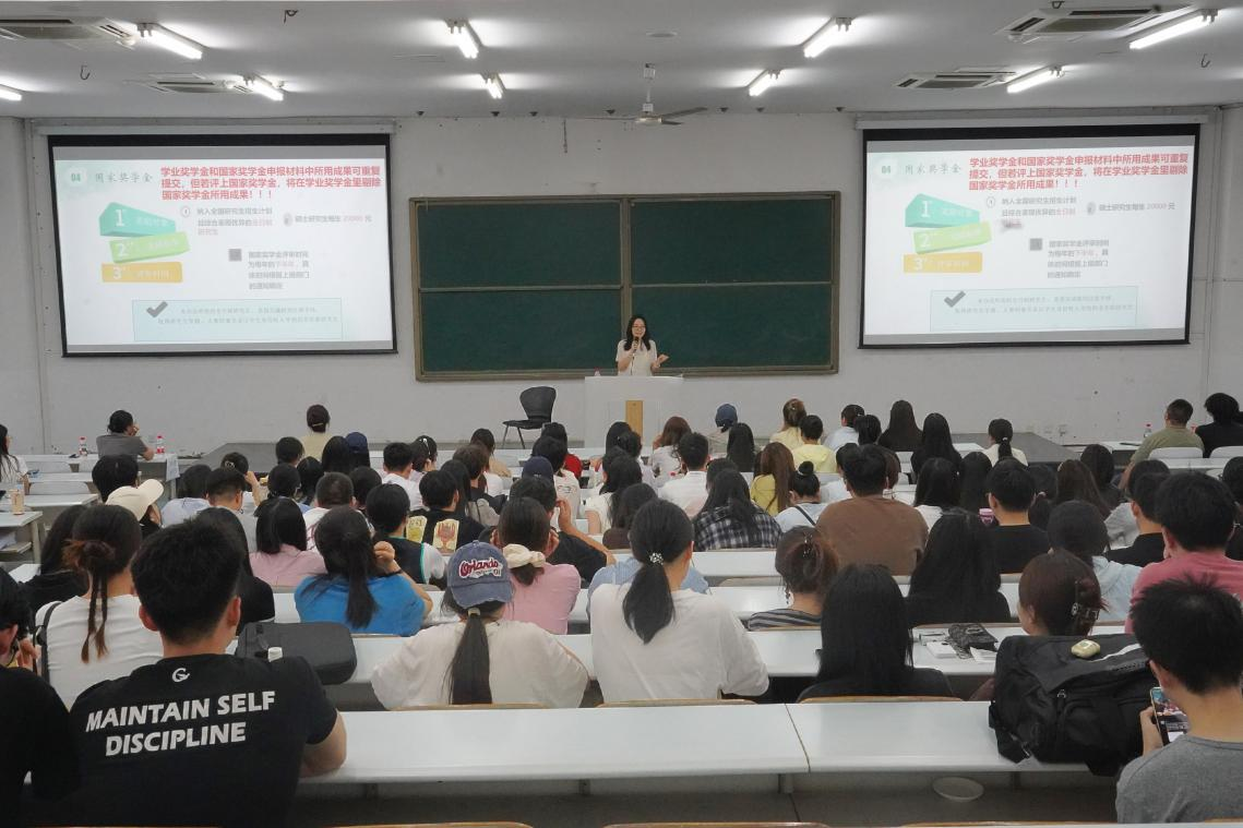 奖助学金政策,对申请渠道、评选标准等同学们普遍关注的内容进行了细致说明,体现了学院对学子们的人文关怀与支持。随后,教学秘书吴云则围绕培养方案、学位授予要求及教学管理等方面进行了清晰解读,为同学们指明了未来三年的学习路径和学业要求。