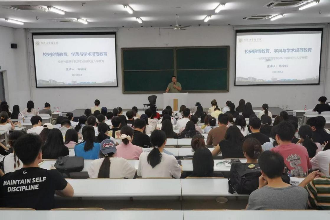 在图北楼17101教室举办研究生新生入学教育大会。学院副院长陈宇科,教学秘书吴云,研究生辅导员向薪蓉、王雪薇,以及学院2025级研究生新生参加。
