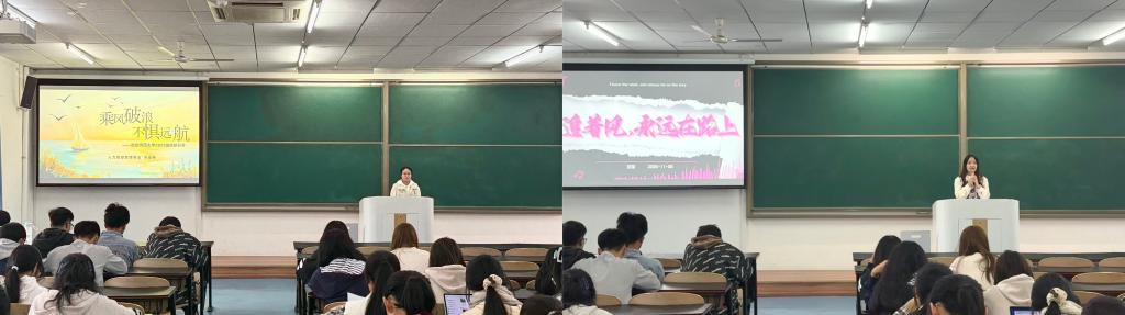 于砺志楼T2505举办工商管理类专业分享会。本次活动由工商管理系主任高艳红主持,邀请2022级人力资源管理专业熊嘉英、旦莹,2022级工商管理专业何媛媛、秦瑞雪四位保研至国内知名高校的四位同学担任主讲,2025级工商管理类专业全体学生共同参与。