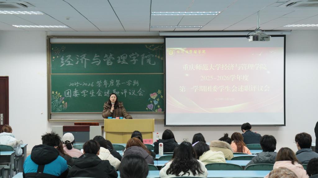 于求是楼321开展2025—2026学年第一学期团委学生会述职评议会。学院团委书记兼学工办主任张莉、第20届团委学生会全体成员及各年级学生代表参会。