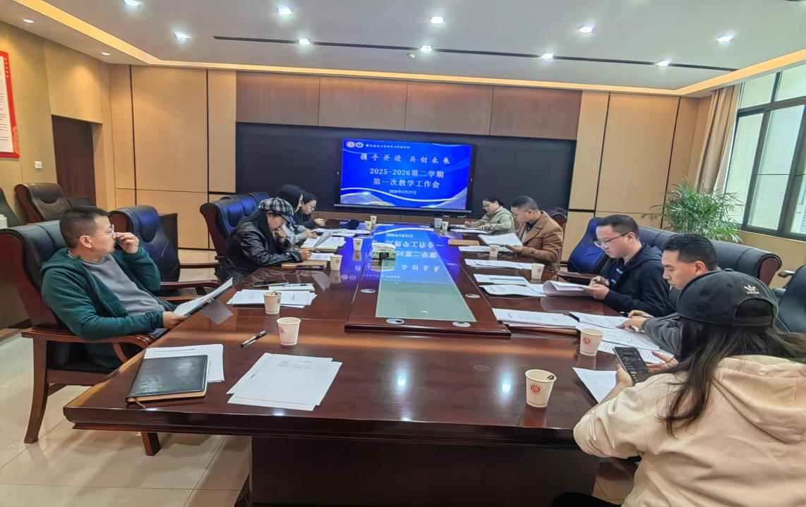 在求是楼420会议室召开2025-2026学年第二学期首次教学工作会。会议由学院副院长左金隆主持,各系主任及教科办全体人员参会,共谋新学期教学工作新篇章。