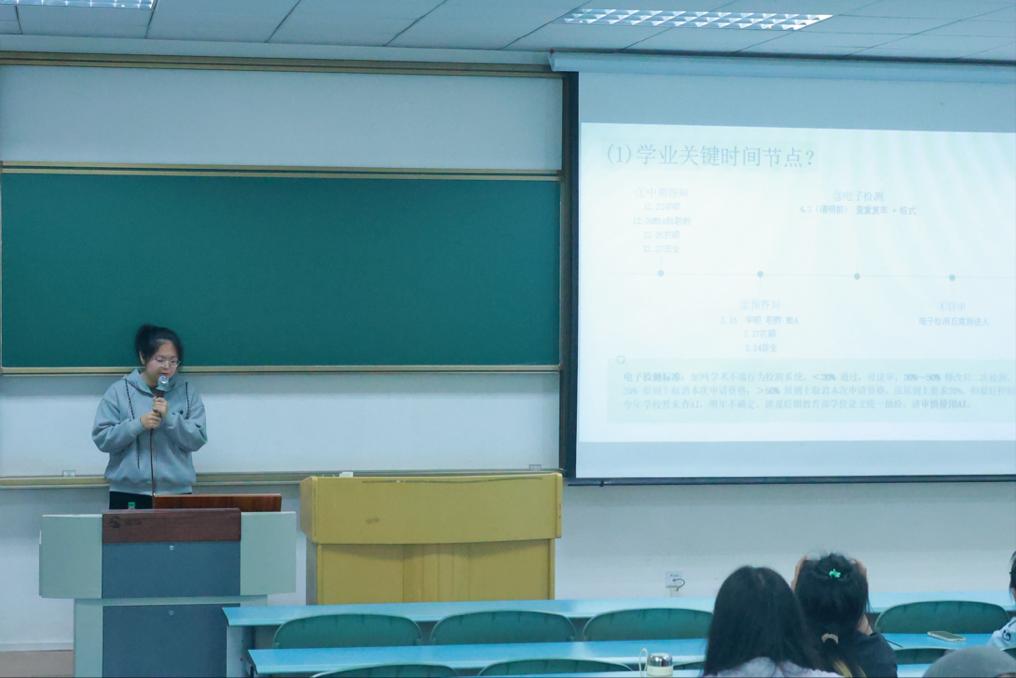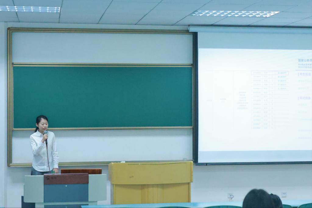 李嘉仪同学则聚焦行测与申论展开专项讲解。强调“基础夯实—综合分析—大作文突破”的渐进式训练逻辑,详细解读了申论盲审的评分标准。此外,她还提供了科学的答题顺序与时间分配建议,并特别叮嘱研究生在备考公务员的同时,按时完成学院规定的毕业学术成果要求,做到“考公与学业两不误”。