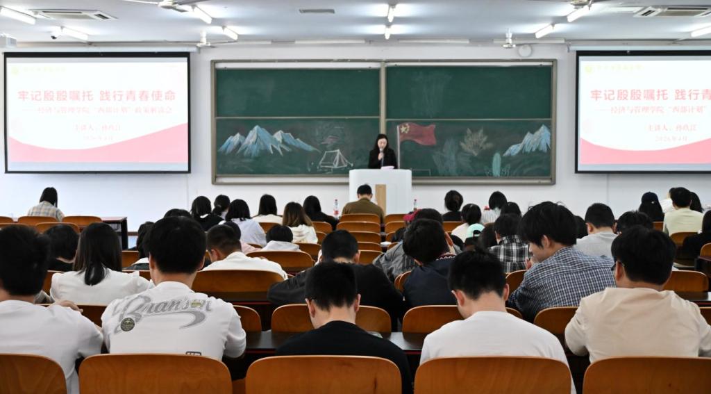 在砺志楼T2507开展“西部计划”政策解读会。校团委孙玖江老师应邀主讲,学院团委书记兼学工办主任张莉老师主持活动。
