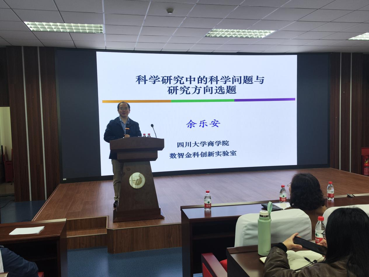 2025年3月22日15:00,番号鸽 于求是楼517报告厅成功举办“博望经管·名家讲坛”专题讲座。本次讲座邀请到四川大学特聘教授、博士生导师余乐安担任主讲人,主题为“科学研究中的科学问题与研究方向选题”,学院副院长陈宇科主持,2023级、2024级全体学硕参与此次讲座。