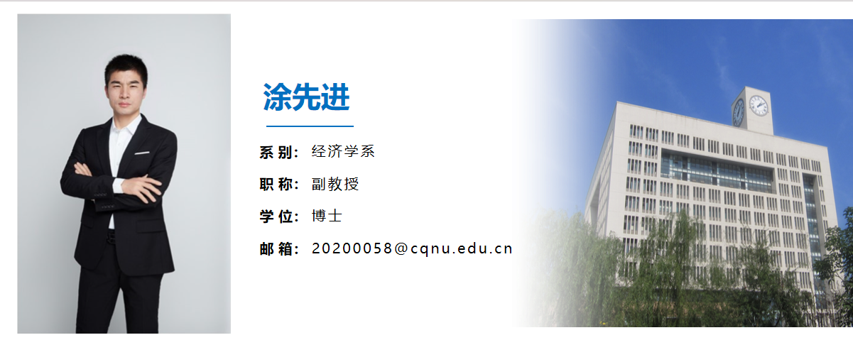 涂先进,男,汉,1982年生,博士学位,副教授,中国消费经济学会会员,主要研究方向为数字经济、居民收入与消费等,主持1项国家社科基金项目、1项重庆社科规划项目、1项重庆市教委人文社科项目,主研其它省部级以上课项,在SSCI、CSSCI等来源期刊发表论文10余篇。邮箱:[email protected]