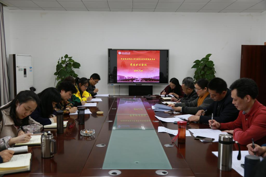 在学院楼311召开党委扩大会议。学院党委书记税强,副书记任源钢,党委委员及各支部书记参加会议。税强书记主持会议。