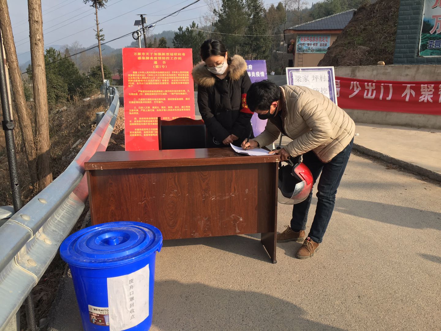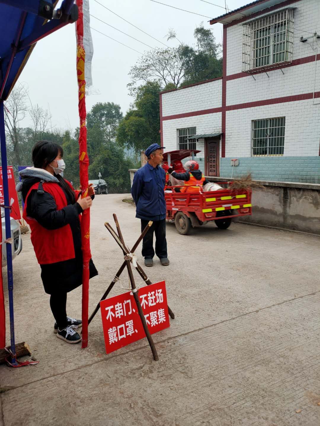 家住重庆市江津区石蟆镇和平村4社的彭清燕同学主动加入当地抗疫志愿者队伍。她在劝导站24小时值守,对想要出入村的村民进行劝导。