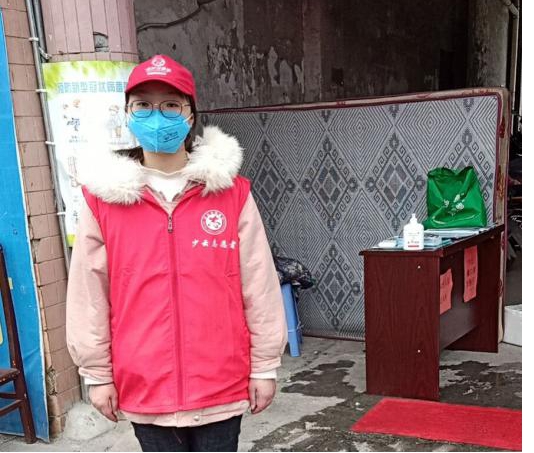 疫情期间她志愿服务于重庆市涪陵区敦仁街道演武厅社区居民委员会。疫情前期她的工作是巡查居民楼,人员的进出登记等。她积极帮助需外出人员办理渝康码和健康证明,方便他们出行、工作。