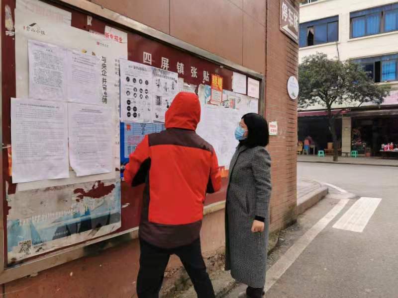她既是学院研究生,也是重庆江津区四屏镇的一名基层工作者,从正月初五开始,就回到了工作岗位,加入了一线防疫工作。每天的工作不但要走村入户排查外来人员,了解社区居民有没有发热症状,还要负责场镇消毒防疫和市政管理工作。在疫情防控期间,她忘记了自己是一名怀胎5月的孕妇,每天要负责场镇约2万㎡的消毒工作。遇到赶集天,早上6:30就起床,7点准时到街上,劝返来街上卖菜和不戴口罩的老百姓。