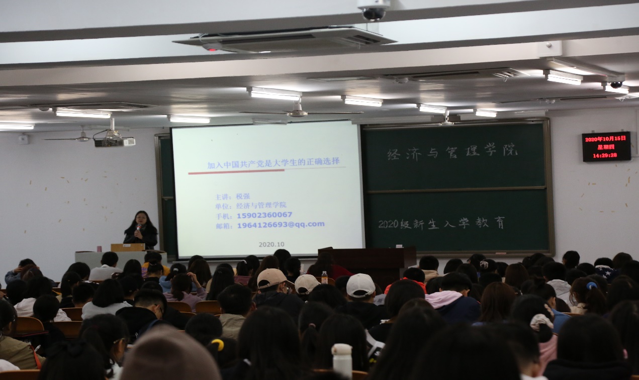 2020级各专业积极开展了新生入学教育活动。10月15日,2020级新生在特教楼2315教室开展了以“加入中国共产党是大学生的正确选择”为主题的新生入学教育。主讲人学院党委书记税强向同学们介绍了加入中国共产党的原因、申请入党的基本条件和程序。进一步引导同学们理解马克思主义和爱国主义,建立对党的正确认识。