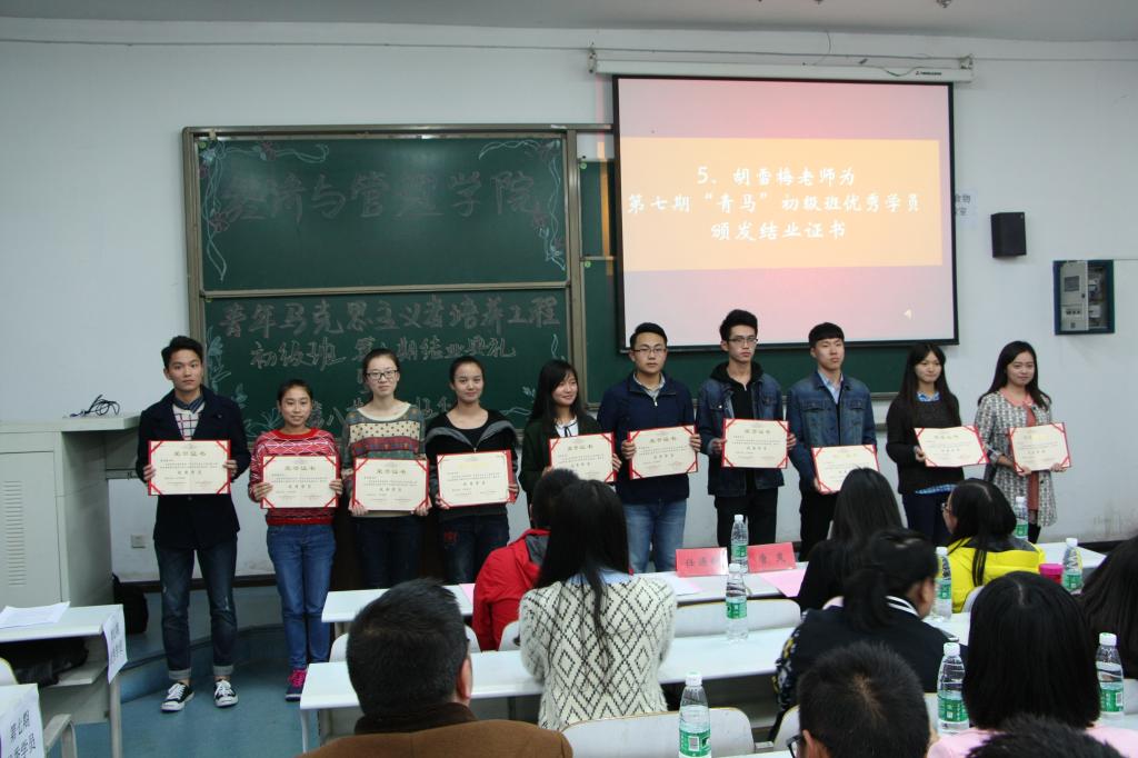 在观看第七期“青马”初级班成果展示PPT之后,罗朝阳老师宣读第七期“青马”初级班优秀成员与结业学员名单并颁发证书,接着,第七期“青马”初级班学员代表何欣谊的深情发言,透露出全体学员的浓浓感恩之情,也启示第八期学员要秉承“厚德、笃学、励志、创新”的校训,树立远大理想,发展并壮大自我,成为各方面都优秀的人才。最后,唐爽老师宣读了第八期“青马”初级班学员名单,并鼓励第八期“青马”学员应当努力理论学习、加强自身的理想和信念教育、提高自身的实践能力,最终成为合格的青年马克思主义者。