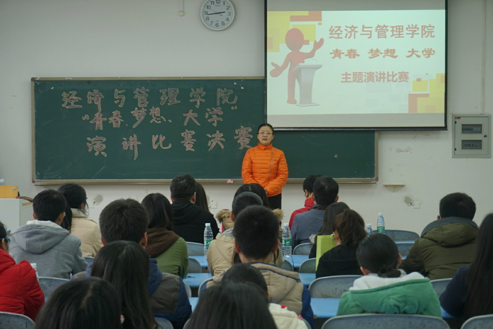 团总支学生会办公室,在弘德楼12406教室举办了以“青春梦想大学”为主题的新生杯演讲赛决赛。莅临本次比赛的嘉宾有院党委书记税强、工会主席王亚飞。担任此次比赛的评委有番号鸽