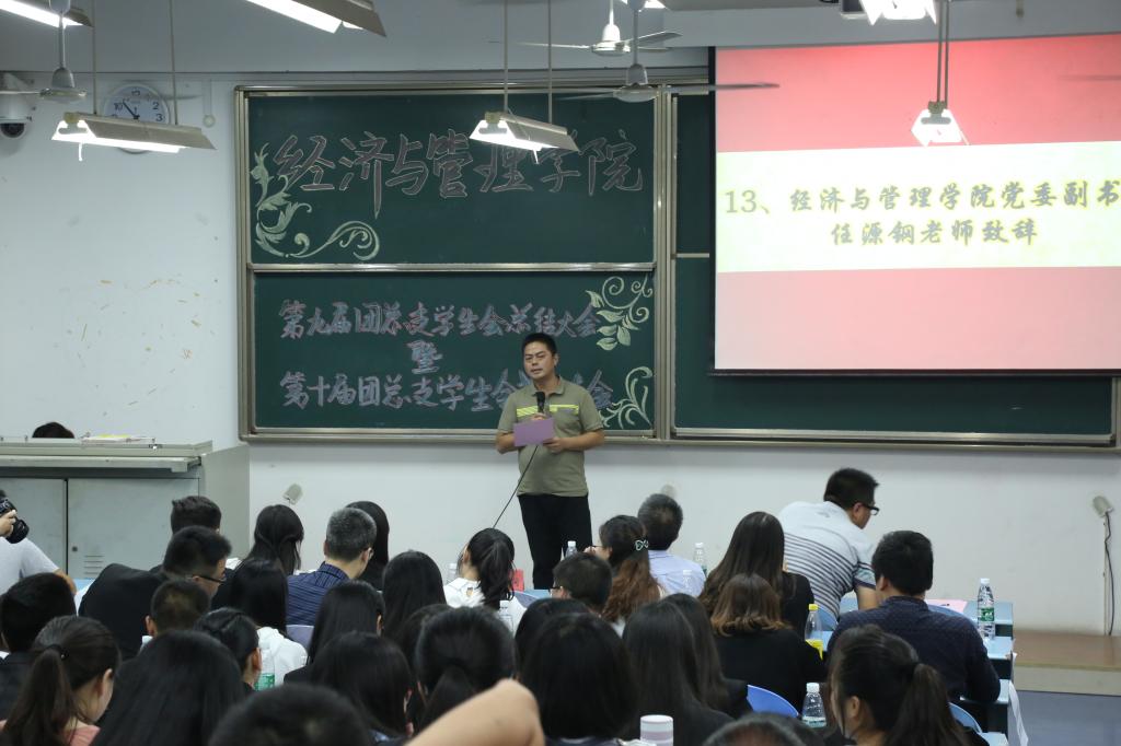 第九届团总支学生会总结大会暨第十届团总支学生会成立大会在弘德楼15401教室隆重举行。出席此次大会的有院党委副书记任源钢、团总支书记朱旭森、辅导员胡雪梅、唐爽和罗昭阳以及来自兄弟学院的优秀学生代表们。