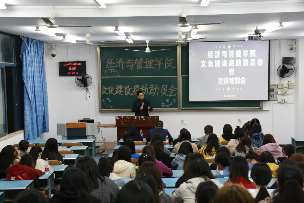 于弘德楼15201召开学院文化建设启动动员会暨宣讲培训会。学院党委副书记任源钢,全体辅导员,各班班长团支书以及学生“先进集体和个人宣讲团”成员参加此次会议。
