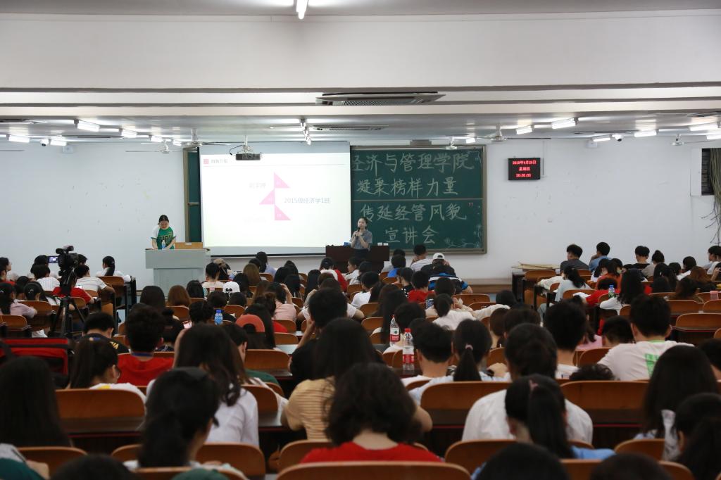 本次宣讲从3月29日开始,持续一月,实现了学生的全覆盖宣讲,重点开展了三项工作。一是积极培育、深入挖掘先进典型。学院结合实际,选树学院三好学生、优秀学生党员和优秀学生干部、文明大学生、先进班集体和文明寝室等方面的先进典型,组建学院“凝聚榜样力量,传延经管风貌”宣讲团。二是广泛组织、持续开展示范引领工作。学院积极组织“凝聚榜样力量,传延经管风貌”宣讲团进支部、进课堂、进社团、进宿舍,通过专题宣讲、分组讨论、面对面互动交流、谈体会谈心得等方式,大力开展先进集体说示范,学生党员说引领,学生干部说担当,三好学生说学习,文明学生说事迹“五说”活动,不断增强吸引力,进一步的在院内形成“向先进学习,向榜样靠拢”,比、学、赶、帮、超的良好氛围。三是以推进学院文化建设为核心,全方位多角度立体引领。宣讲活动的开展以推进学院文化建设为主线,不断深化载体,充分发挥微博、微信等新媒体优势,依托学院官网、“青马微信公众平台”、QQ官方微博,设立“文化之声-表彰先进宣讲会”专目,实现先进典型宣传工作常抓常新。同时,学院把先进典型宣传融入“寝室风采大赛”“职业生涯规划大赛”等第二课堂活动,进一步拓宽宣传载体,实现了宣讲与专业活动相结合,增强了感染力和感召力。
