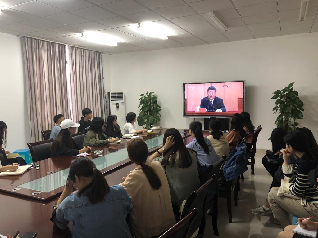 组织青年师生代表在学院楼311会议室集中收看纪念五四运动100周年大会。学院各团支部也通过收看直播或纪念大会录像、回放的方式,认真组织团员青年和团干部收看纪念五四运动100周年大会。观看后,师生纷纷表示:要在中国共产党的领导下,在新时代赓续传承五四精神,奋发有为,与祖国的发展同频共振。