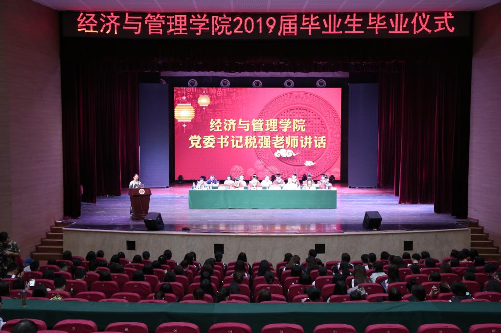 毕业仪式在隆重的国歌声中开始。首先,副校长、学位委员会主任田盈教授致辞。他对即将踏上新征程的毕业生们表示祝贺,并希望同学们一直保持学习的状态,树立终身学习的观念,勇敢而自信地面对新的征程接着,副院长陈道平教授宣读了表彰2019届优秀(优良)毕业生的决定,副院长喻科副教授宣读了表彰升学深造学生的决定。