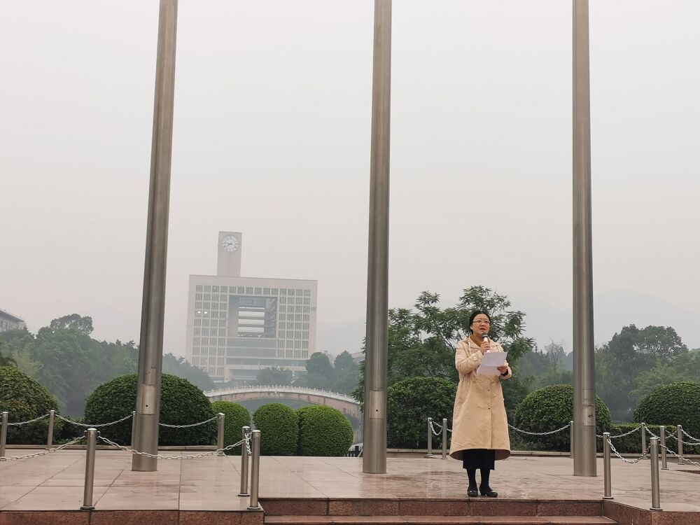 升旗的前一天是抗美援朝70周年纪念日,税强教授带领大家回顾了中国人民志愿军的斗争精神,他们用生命谱写了英雄史诗,为祖国赢得了几十年的和平发展时间。
