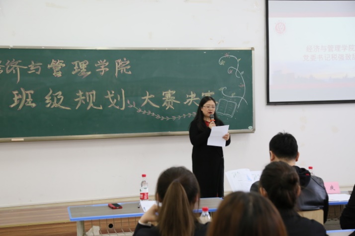 于汇贤楼102教室成功举办第一届班级建设规划大赛决赛。学院党委书记税强,学生处副处长罗庆,招生就业处副处长田力以及校团委办公室主任熊宇莅临本次比赛决赛现场担任嘉宾和评委。