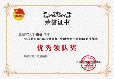 在2019年4月至8月持续比赛期间,学院领导十分重视,多次亲临现场指导和解决比赛中遇到的问题。指导团队也邀请校外专业人士对参赛学生进行证券投资实践培训,指导教师充分利用集中培训时间讲授一些证券投资理论知识和投资技术方法,同时也将大量的时间用在分别指导众多参赛学生进行具体投资操作以及传授证券投资的实践技巧和经验。历经校赛、省赛和国赛三个阶段的激烈角逐,在指导教师的辛勤工作和参赛学生不懈的努力下,我校获得了“省赛最佳组织学校奖”,段俊老师获得了“最佳领队奖”,参赛学生获得了多项国家级一等奖、二等奖和三等奖的骄人成绩。