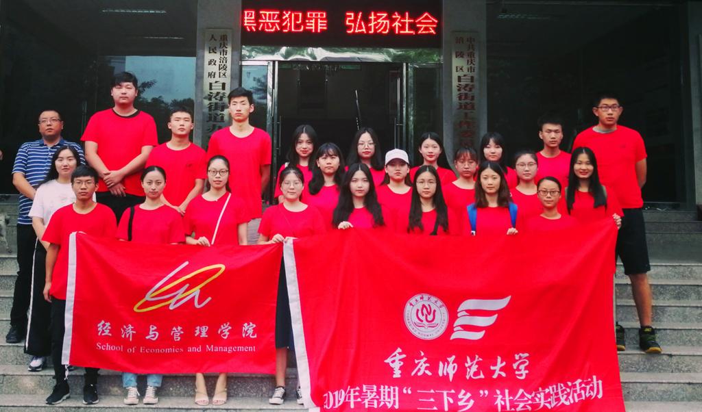 23名青年志愿者来到重庆市涪陵区白涛街道开展大学生暑期“三下乡”活动。学院党委副书记任源钢、团总支书记罗昭阳老师、辅导员胡雪梅老师参加了本次“三下乡”活动。此次三下乡活动旨在让学生结合专业,进一步关注和探究重庆产业的基本问题,使学生聚焦于脱贫攻坚的征程中,自觉地把自身发展与爱国情、强国志、报国行相融合,为决胜全面建成小康社会,实现中华民族伟大复兴的中国梦贡献青春力量。