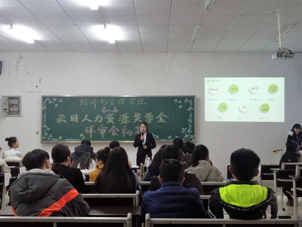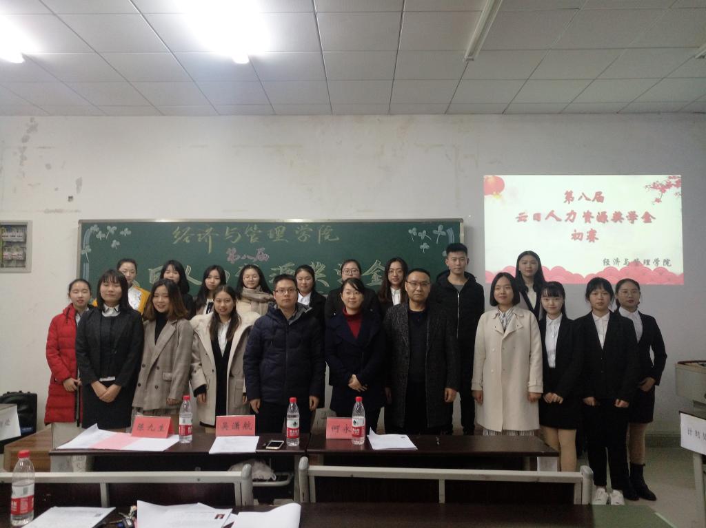 第八届“云日人力资源奖学金”评审初赛在学院楼101顺利举行。人力资源专业陈九生老师、吴潇航老师、何永强老师共同担任评委。