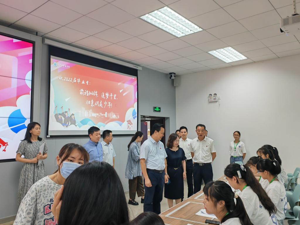 毕业派遣工作于6月28日在求是楼131和133进行,学校党委书记曾礼、党委副书记陈志军、招生就业处处长冉久飞、学生处处长胡小强、学生处副处长赵秀娟、学院党政领导班子到场视察派遣工作。毕业班辅导员胡雪梅、李威负责现场工作的开展。