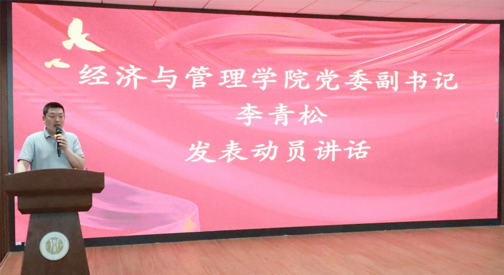 仪式在共青团团歌中拉开帷幕。张莉书记介绍了本次暑期“三下乡”社会实践活动的安排及基本情况,强调活动要以“喜迎二十大、永远跟党走、奋进新征程”为主题,重点项目与专项活动相结合,并希望参与学子能立足实践,提前规划设计,充分利用专业知识,深入开展社会实践活动。同时,党委副书记李青松指出,暑期“三下乡”社会实践活动是实践育人的主要途径之一,参与团队要将“受教育、长才干、作贡献”与乡村振兴相结合,有效组织学生参与社会实践,扎实开展好服务工作,用实际行动彰显青春担当。