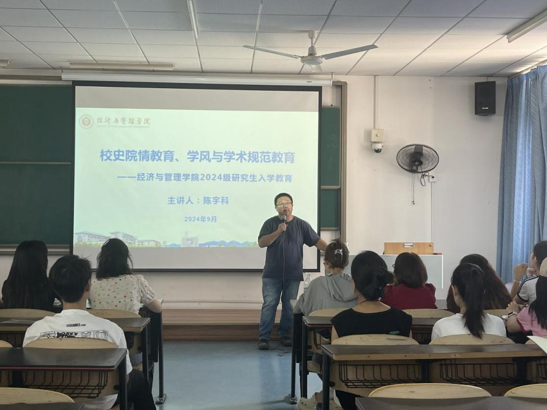 副院长陈宇科教授,教学秘书吴云老师,辅导员向薪蓉、王雪薇老师为全体2024级硕士研究生开展专题讲座。