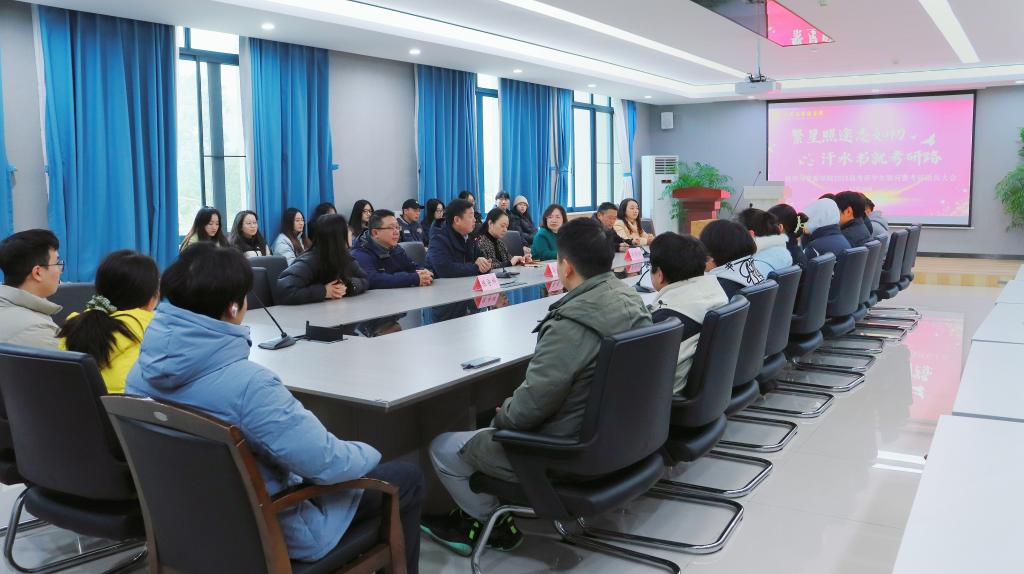 于求是楼329举办“考研送温暖”慰问活动。学院全体党政领导和毕业年级辅导员与考研学生代表齐聚一堂,为考研学子加油鼓劲。