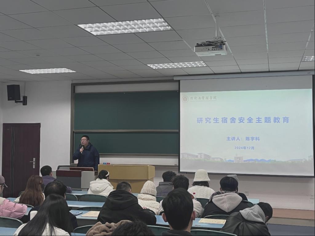 在求是楼213教室举办“研究生宿舍安全”主题活动。活动由副院长陈宇科主持,辅导员向薪蓉、王雪薇以及学院各年级寝室长、班委参加此次讲座。