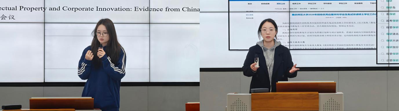 经验分享环节上,两位学子结合自身成长经历,带来了干货满满的实用建议。聚焦学业提升与科研实践,从专业绩点优化、科研项目参与、学术思维培养等方面分享了具体方法详细梳理了保研申请的关键时间节点与各项申请材料的准备技巧为有保研意向的同学提供了清晰的行动指南任缘圆则从多元选择与信息获取的角度出发,针对就业、考研、保研等不同发展路径,提出了精准定位自身优势、高效搜集相应信息、科学制定准备计划的实用策略,帮助同学们拓宽了发展视野。