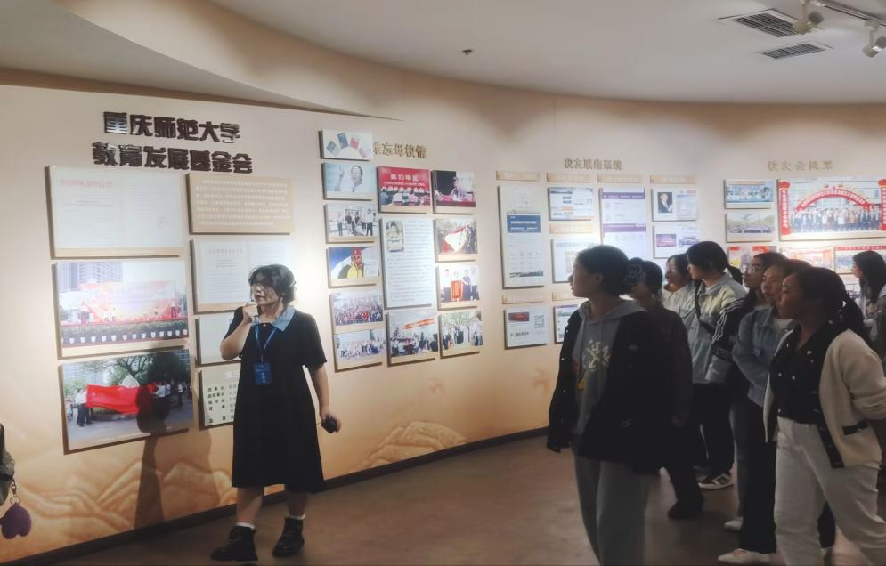 图 1工作人员在讲解学校发展史
