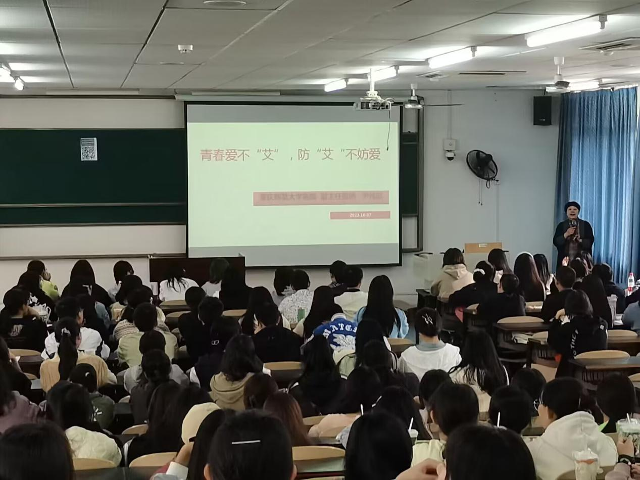 在特教楼2302教室开展了一场预防艾滋病的宣传教育活动。本次活动由校医院院长尹伟欣进行主讲。