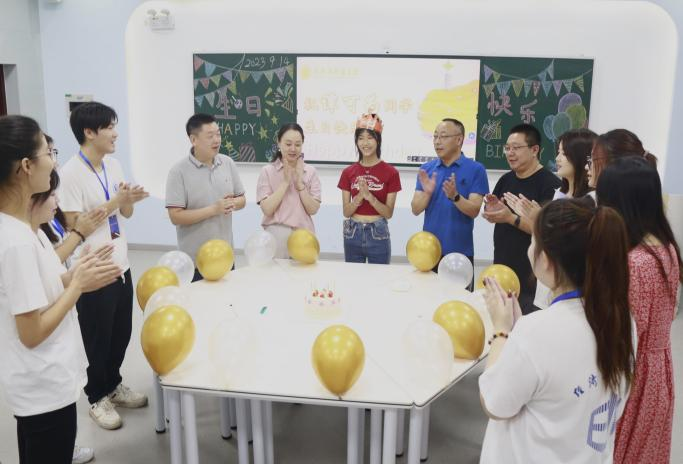 新心相连全员联动,迎新不“止”于此。报道期间适逢2023级新生李乐瑄、王胤橙、谭可为的生日,学院精心为其定制了生日蛋糕,院领导和志愿者们齐唱生日歌并合影留恋,同时为贫困生准备了爱心礼包。无垠的关爱、真情的关怀,在这炎热的天气里,犹如春风拂面,让远道到来的同学倍感亲切。